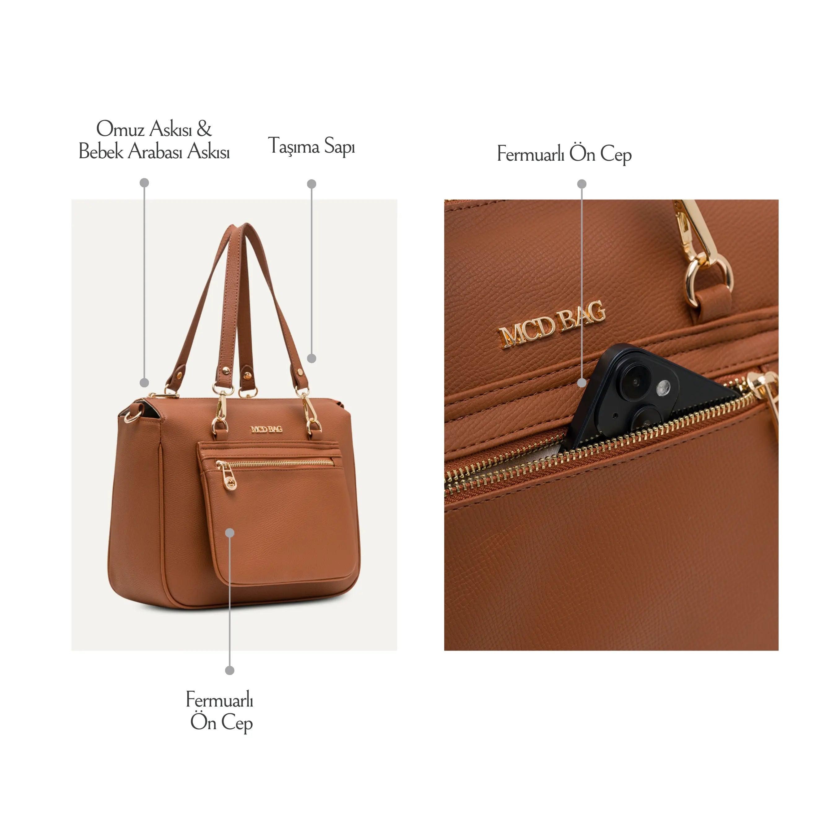 Siyah Desenli DeriAlisa, pratik kullanım için tasarlanmış harika bir organizer çantadır. Elde tutma askılarını söküp bebek arabasına asılabilir, aynı zamanda omuz askısı ile omuzda rahatça taşınabilir. İçerisinde hem anne hem de bebek için ihtiyaç duyulan her şey düzenli bir şekilde taşınabilir, günlük kullanımda ve seyahatlerde mükemmel bir yardımcıdır.