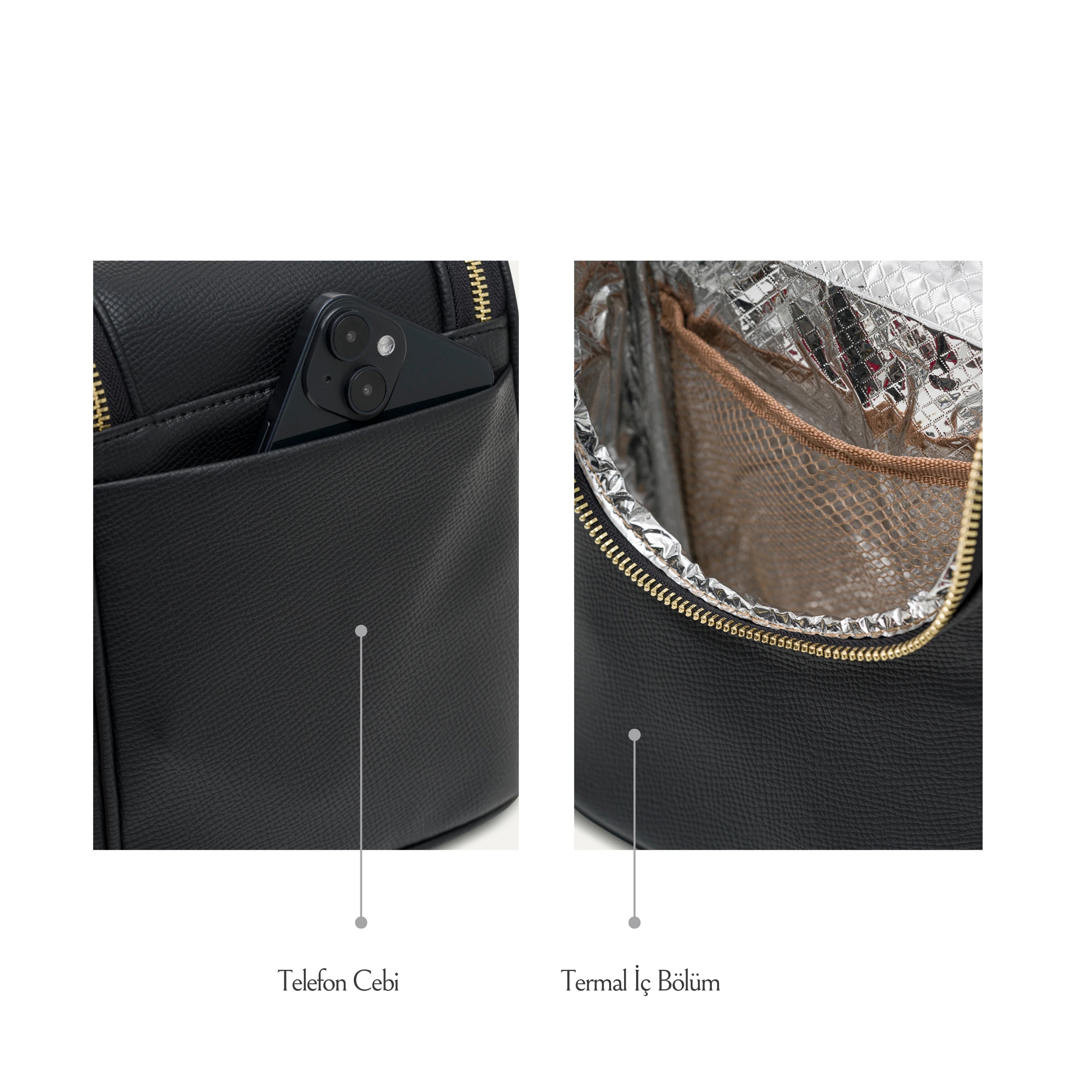KahverengiLara, hem annenin hem de bebeğin ihtiyaçlarını taşımak için termal özelliğiyle öne çıkan pratik bir çantadır. Arka tarafındaki özel bölmesi, telefon ve cüzdan gibi kişisel eşyalarınıza kolay erişim sağlar. Termal bölmesi ise içeceklerin ve yiyeceklerin sıcaklığını koruyarak günlük hayatınızı kolaylaştırır. Konforlu omuz askısı ve şık tasarımıyla Lara, işlevsellik ve stil arayan anneler için ideal bir seçimdir.