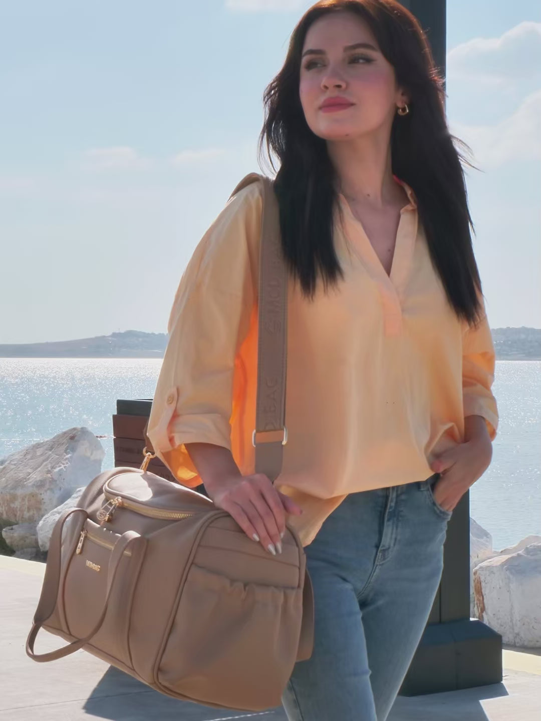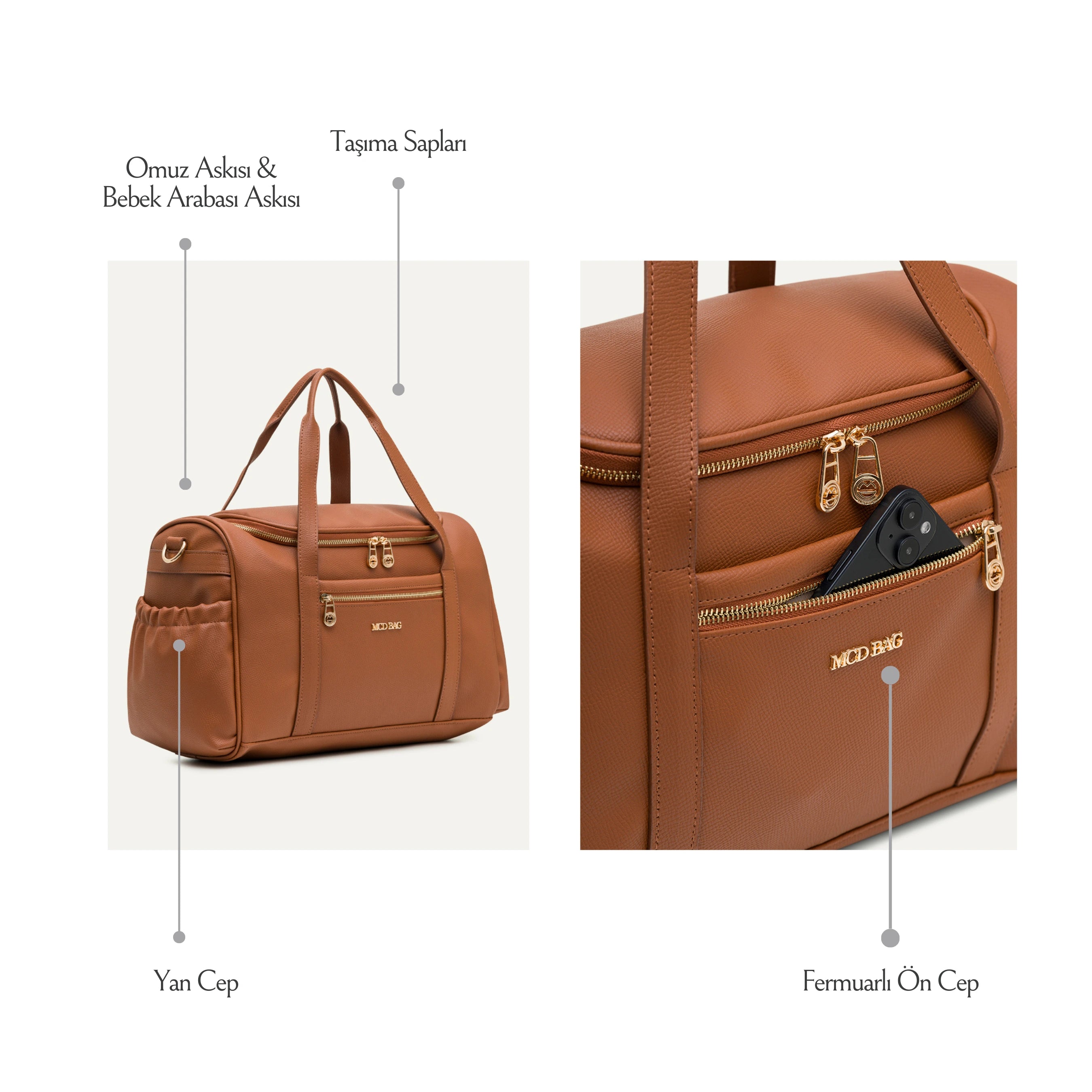 KahverengiSerena, günlük ihtiyaçlarınızdan uzun yolculuklara kadar her anınızı kolaylaştırmak için tasarlandı. Geniş iç hacmi ve çok bölmeli yapısı, eşyalarınızı kolayca organize etmenizi sağlarken, elde, omuzda ve bebek arabasında rahatlıkla taşınabilir. Şık tasarımı ve dayanıklı yapısıyla her anınıza uyum sağlayan Serena, annelerin vazgeçilmezi olacak!