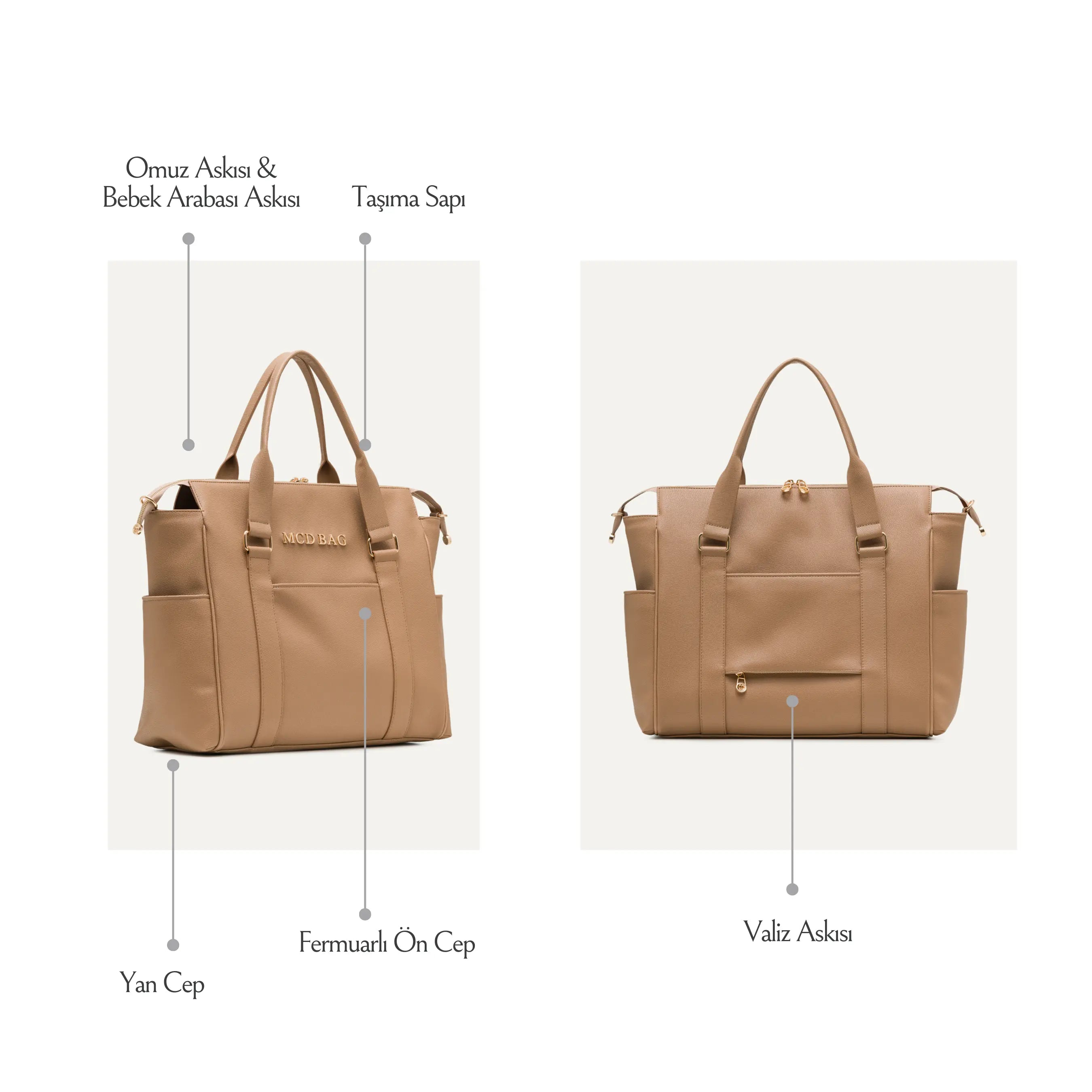KahverengiDoğumdan seyahate kadar her ihtiyacınızı karşılamak için tasarlanan Voyage, geniş iç hacmi ve çok sayıdaki cebiyle eşyalarınızı düzenli bir şekilde taşımanıza olanak tanır. Hem elde hem omuzda kolayca taşınabilen bu valiz, arka tarafındaki özel eklentisi sayesinde valizinizin üzerine sabitlenerek ekstra konfor sağlar. Şık tasarımı, dayanıklı yapısı ve fonksiyonelliğiyle hem uzun yolculuklar hem de özel anlar için mükemmel bir tercih!
